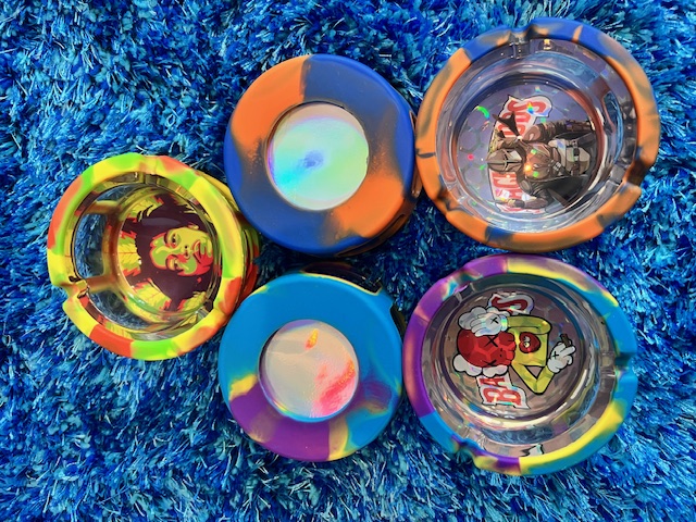 Backwoods premium glass ashtray with silicon coating. Come in a wide variety of designs. Pick your favorite design whether its LA Lakers, Scarface, or Sponge Bob. These ashtray will bring some style to your collection.